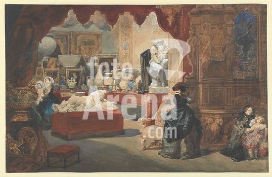 alb3677586 Interior of a Museum. Artist: Eugène-Louis Lami (French, Paris 1800-1890 Paris). Dimensions: 13 1/8 x 20 1/2 in. (33.4 x 52 cm). Date: 19th century. Museum: Metropolitan Museum of Art, New York, USA.