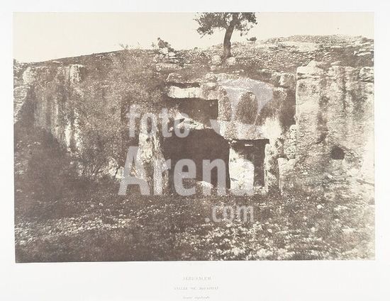 alb3678884 Jérusalem, Vallée de Josaphat, Grotte sépulcrale, 1. Artist: Auguste Salzmann (French, 1824-1872). Dimensions: Image: 23.2 x 33.5 cm (9 1/8 x 13 3/16 in.)Mount: 44.8 x 59.8 cm (17 5/8 x 23 9/16 in.). Printer: Imprimerie photographique de Blanquart-Évrard, à Lille (French, active 1851-55). Date: 1854. Museum: Metropolitan Museum of Art, New York, USA.
