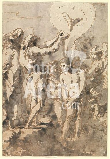 alb3684240 The Baptism of Christ (with Saint John, Without his Cross, in Profile to the Right). Artist: Giovanni Domenico Tiepolo (Italian, Venice 1727-1804 Venice). Dimensions: 8 5/8 x 5 3/4 in. (21.9 x 14.6 cm). Date: ca. 1770-90. Museum: Metropolitan Museum of Art, New York, USA.
