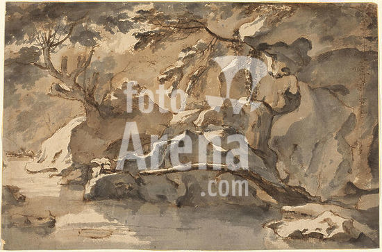 alb3704015 Landscape (after Paul Bril). Dimensions: overall: 27.2 x 41.3 cm (10 11/16 x 16 1/4 in.). Medium: pen and brown ink with brown and gray wash on laid paper. Museum: National Gallery of Art, Washington DC. Author: HERMAN VAN SWANEVELT.
