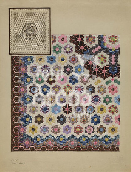 alb3709351 Patchwork Quilt. Dated: c. 1936. Dimensions: overall: 29.8 x 22.7 cm (11 3/4 x 8 15/16 in.) Original IAD Object: 106" long; 99" wide. Medium: watercolor, graphite, and gouache on paper. Museum: National Gallery of Art, Washington DC. Author: Elizabeth Valentine.