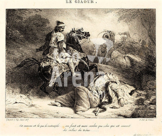 alb3717311 Le Giaour (The Infidel). Dated: 1823. Dimensions: sheet: 25.4 x 34.2 cm (10 x 13 7/16 in.). Medium: lithograph on wove paper. Museum: National Gallery of Art, Washington DC. Author: Théodore Gericault and Eugène Louis Lami.