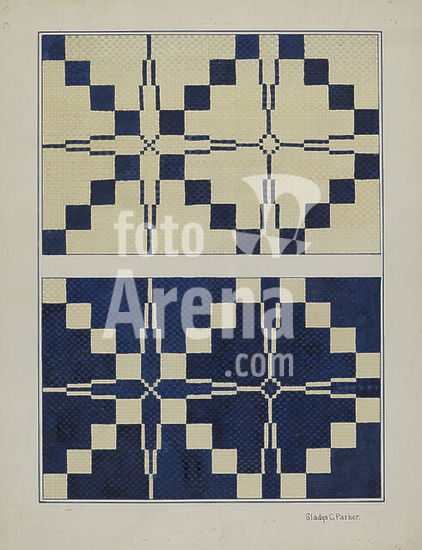 alb3746018 Woven Bedspread. Dated: c. 1936. Dimensions: overall: 35.5 x 27.9 cm (14 x 11 in.) Original IAD Object: 6 3/4" square. Medium: watercolor and graphite on paper. Museum: National Gallery of Art, Washington DC. Author: Gladys C. Parker.