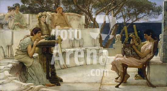 alb3891337 Sappho and Alcaeus. Date/Period: 1881. Oil paintings; panel paintings. Oil on panel oil on panel. Height: 104.14 mm (4.10 in); Width: 122 mm (4.80 in). Author: Sir Lawrence Alma-Tadema, R. A., O. M.