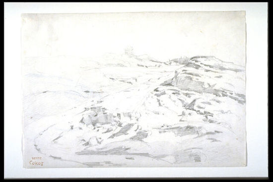 alb3894892 Landscape Studies, Italy. Date/Period: 1820/1833. Graphite on white wove paper. Width: 32.39 cm. Height: 20.8 cm (sheet). Author: Jean-Baptiste Camille Corot.