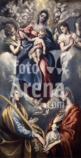 alb3896577 Madonna and Child with Saint Martina and Saint Agnes. Date/Period: Between 1597 and 1599. Painting. Oil on canvas. Height: 193.5 cm (76.1 in); Width: 103 cm (40.5 in). Author: EL GRECO.