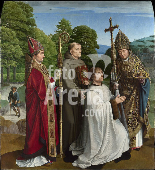 alb3898949 Canon Bernardijn Salviati and Three Saints. Painting. Oil on panel. Height: 103.4 cm (40.7 in); Width: 94.3 cm (37.1 in). Author: Gerard David.