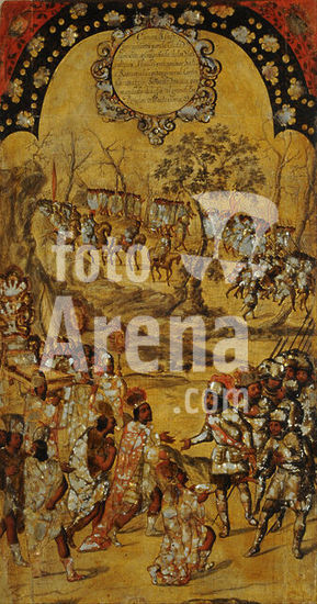 alb3899640 "La Conquista de México" -- panel 8. Date/Period: Last quarter XVII century. Painting. Height: 1,000 mm (39.37 in); Width: 520 mm (20.47 in). Author: Miguel GONZALES.