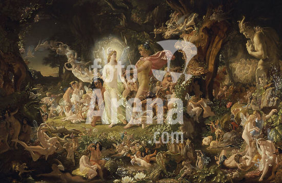 alb3904729 The Quarrel of Oberon and Titania. Date/Period: 1849. Painting. Oil on canvas. Height: 990 mm (38.97 in); Width: 1,520 mm (59.84 in). Author: Joseph Noel Paton.