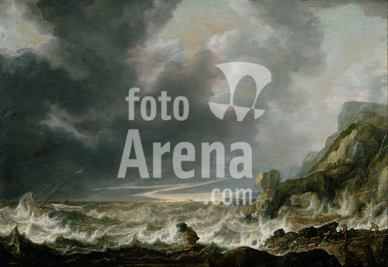 alb3906958 Ship in Distress off a Rocky Coast. Date/Period: Ca. 1645. Oil paintings. Oil on wood. Author: SIMON DE VLIEGER.
