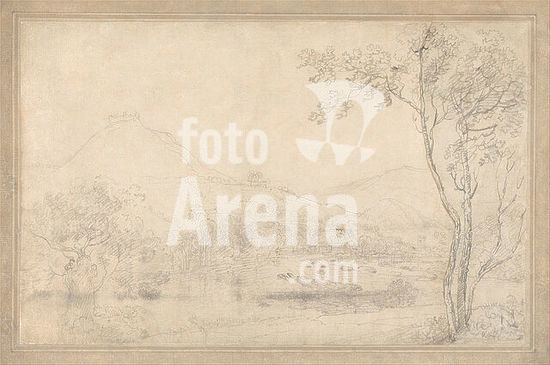 alb3907145 Castell Dinas Bran, Wales. Drawing. Graphite and black chalk with brown wash on medium, moderately textured, cream laid paper mounted on thick, moderately textured, cream laid paper with brown wash. Height: 330 mm (12.99 in); Width: 498 mm (19.60 in). Author: RICHARD WILSON.