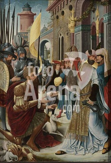 alb4105447 Meeting of Abraham and Melchizedek (inner, left wing of a triptych). Dating: c. 1510 - c. 1520. Place: Antwerp. Measurements: frame: h 113.5 cm × w 82 cm; support: h 102 cm × w 71.2 cm; sightsize: h 100.5 cm × w 69.3 cm. Museum: Rijksmuseum, Amsterdam.