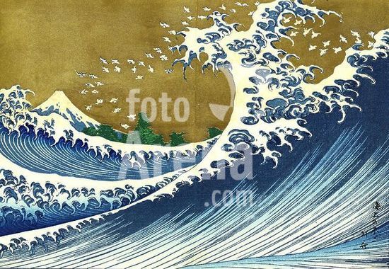 alb5224808 Katsushika Hokusai / It is a mirrored version of the famous great wave of Kanagawa from the 36 views of the Fuji. There are no boats and the wave crests are birds.