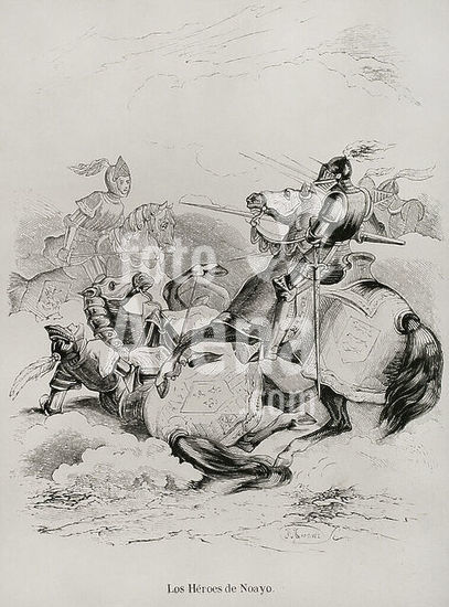 alb5357600 History of Spain. Noayo's heroes. Engraving. Las Glorias Nacionales. Volume III, Madrid-Barcelona edition, 1853.