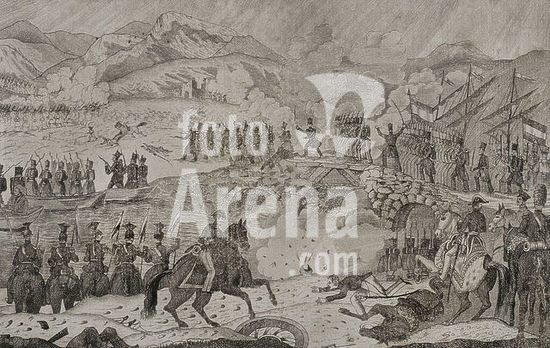 alb5433846 History of Spain. First Carlist War (1833-1840). Third Siege of Bilbao (5 November to 25 December 1836). Taking of the bridge of Luchana. On 22 December 1836, General Espartero began operations in the vicinity of the bridge of Luchana, which was under Carlist control. On the afternoon of 24 December, with the help of two British ships, General Oráa attempted to take the bridge, although he was refused by the Carlists. On 25 December, the Liberal army took the city. Illustration by Mugica. Engraving by Gómez. Panorama Español, Crónica Contemporánea. Volume III. Madrid, 1845. Author: José Gómez. 19th century-Spanish engraver.