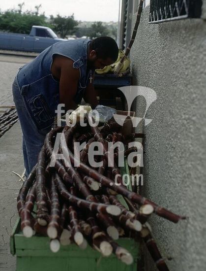 orz152286 VENDEDOR AMBULANTE DE CAÑA DE AZUCAR CON TURISTA - FOTO AÑOS 90. Location: EXTERIOR. SANTIAGO CABALLEROS. DOMINICAN REPUBLIC.