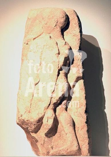 akg229333 Iberisch, 3. Jahrhundert v. Chr. - Krieger aus Osuna (Gruppe "A") - (Krieger mit Kurzschwert und Schild). Hellgelber Kalkstein, Höhe 74,5 cm, Breite 36 cm, Tiefe 17/19,5 cm. Fundort: Osuna (Sevilla). Inv. Nr. AM 1204. Departement des Antiquites Orientales, Paris, Musée du Louvre. Museum: Paris, Musée Du Louvre.