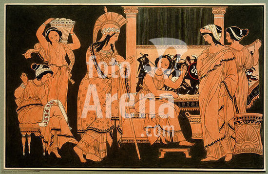 akg137602 History / Ancient Egypt:. "Music and dance before the king". Woodcut, orig. colour, aft. drawing, 1862, by Heinrich Leutemann (1824-1905). No. III of the series: Bilder aus dem Alterthume, München (Braun & Schneider). Münchener Bilderbogen No. 336. Berlin, Sammlung Archiv für Kunst und Geschichte. Museum: Berlin, Sammlung Archiv für Kunst und Geschichte.