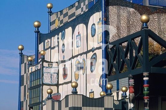 akg455883 Vienna (Austria), 9th district, Fernwärmewerk Spittelau - Spittelau Heating Plant (built from 1988-92; design by Friedensreich Hundertwasser; 1928-2000). Partial view. Photo, undated. Copyright: For editorial use only. Additional copyrights must be cleared.