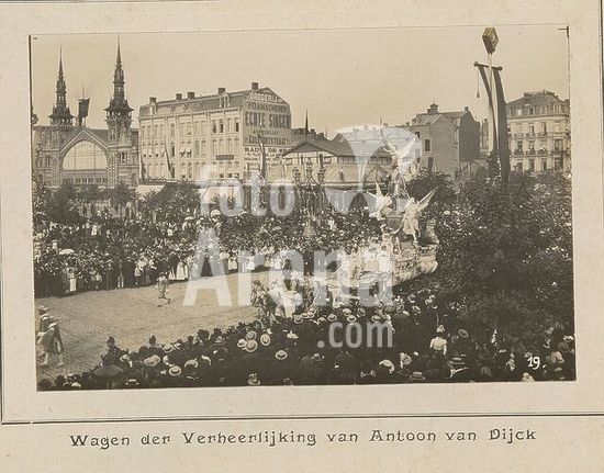 alb15510406 Antwerp, Float dedicated to Anthony van Dyck during the procession: Art through the ages, Float glorifying Anthony van Dyck, photograph, photo, page, photos, photographically illustrated books, height 98 mm, width 152 mm, photographer, 1899 - 1899, photographic paper, photo paper, printing, drukker.