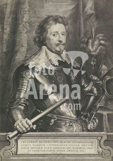 alb15551662 Netherlands, Stock, Carolus van der, Dyck, Anthony van, Antwerp, Pontius, Paulus, Portrait of Frederik Hendrik, Prince of Orange, verso lower left - stamped, Portrait of Frederik Hendrik in armor standing in front of a balustrade after the painting by Anthony van Dyck. At the bottom a cartouche with the name and titles of the portrayed in Latin., print, prints, Orange portraits, height 482 mm, width 342 mm, Southern Netherlands, 1603 - 1658-01-16, print maker, printmaker, 1650 - 1650, paper, engraving, engraving (printing process), Flemish, Dutch, 1599-03-22 - 1641-12-09, after, after painting by, Publication (Event), Publication, publisher.