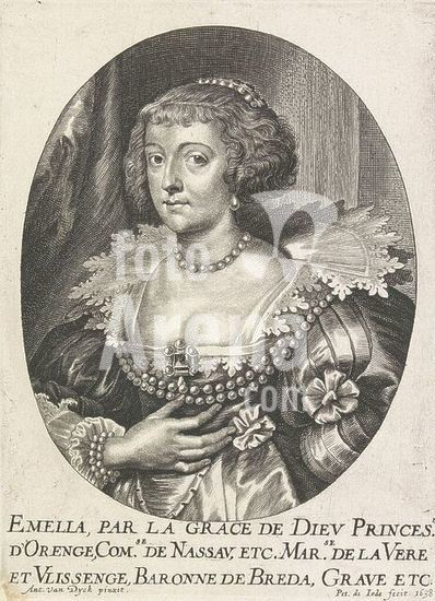 alb15736977 Portrait of Amalia van Solms, Theater of bishops, emperors, kings, dukes, princes, etc. (series title), Theatrum pontificum, imperatorum, regum, ducum, principum, etc. (series title), Portrait of Amalia in an oval. Her name in the bottom margin., print, print maker: Pieter de Jode (II), (mentioned on object), after painting by: Anthony van Dyck, (mentioned on object), Antwerp, 1638, paper, engraving, etching, height, 154 mm × width, 113 mm.