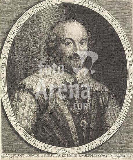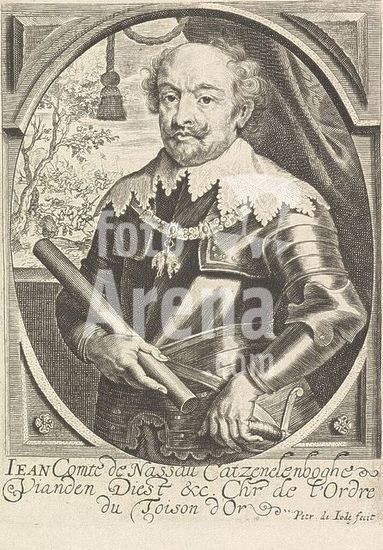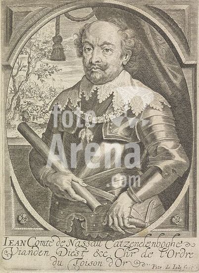 alb15747196 Portrait of John VIII, Count of Nassau-Siegen, Portrait of John VIII in an oval. In his right hand a command staff. In the bottom margin are name and titles., print, print maker: Pieter de Jode (II), (mentioned on object), after painting by: Anthony van Dyck, Antwerp, c. 1628 - c. 1670, paper, engraving, etching, height, 144 mm × width, 107 mm.