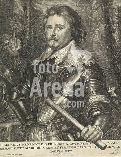 alb15745170 Portrait of Frederik Hendrik, Prince of Orange, Portrait of Frederik Hendrik with a command staff in his left hand. His name in the bottom margin., print, print maker: Coenraet Waumans, (mentioned on object), after painting by: Anthony van Dyck, (mentioned on object), Southern Netherlands, c. 1640 - c. 1641, paper, engraving, height, 254 mm × width, 200 mm.