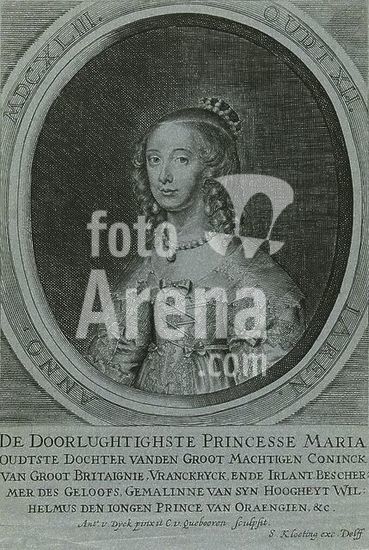 alb15751214 Portrait of Maria Henrietta Stuart, at the age of 12, Portrait of Maria Henrietta in an oval with border writing. Five lines of Dutch text in the bottom margin., print, print maker: Crispijn van den Queborn, (mentioned on object), after painting by: Anthony van Dyck, (mentioned on object), publisher: Simon Kloeting, (mentioned on object), print maker: The Hague, publisher: Delft, c. 1645 - c. 1674, paper, engraving, etching, height, 257 mm × width, 181 mm.