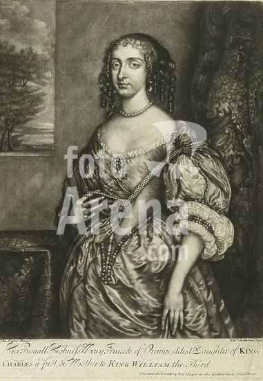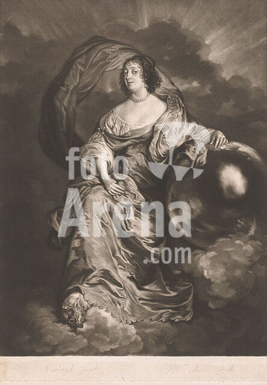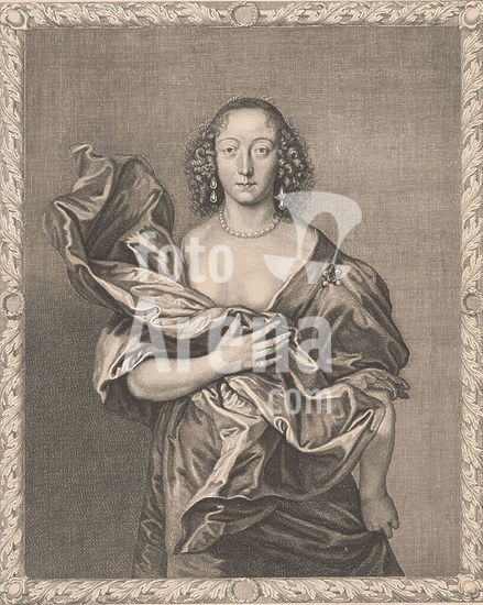 alb15755502 Portrait of Maria Henrietta Stuart, Portrait of Maria Henrietta. She holds her necklace with her right hand. Two lines of English text in the bottom margin., print, print maker: William Faithorne (II), (mentioned on object), after painting by: Anthony van Dyck, (mentioned on object), publisher: Robert Sayer, (mentioned on object), London, c. 1750 - c. 1793, paper, height, 327 mm × width, 231 mm.