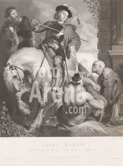 alb15857238 Saint Martin on horseback, cutting his cloak in two, Saint Martin (title on object), print maker: Joseph Franck, after painting by: Anthony van Dyck, printer: Goupil & Cie., print maker: Belgium, publisher: New York (city), 1-Oct-1873, paper, etching, engraving, height 495 mm × width 441 mm, print.