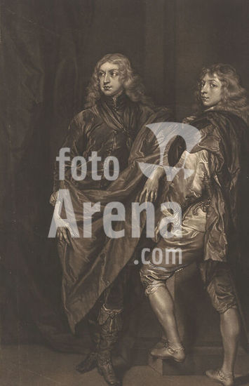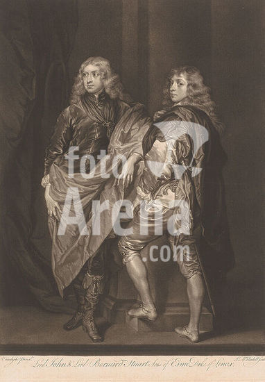 alb15879500 Portrait of John and Bernard Stuart, print maker: James McArdell, after painting by: Anthony van Dyck, London, c. 1745 - 1765, paper, brush, height 438 mm × width 285 mm, print.