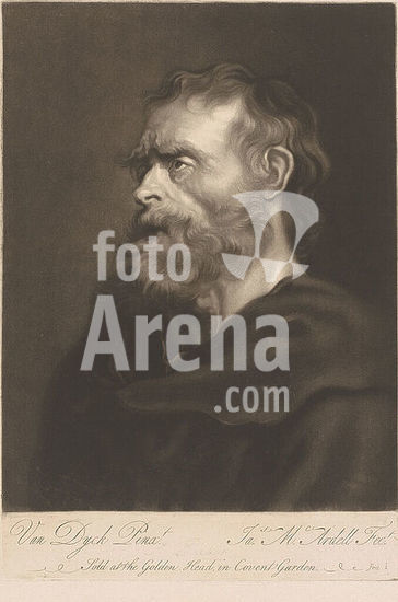 alb15939756 Portrait of an unknown bearded man, print maker: William Unger, after painting by: Anthony van Dyck, after painting by: Peter Paul Rubens, (rejected attribution), Germany, 1847 - 1889, paper, etching, height 257 mm × width 193 mm, print.