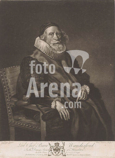 alb15873936 Portrait of Rowland Wandesford, Lord Chief Baron Wandesford (title on object), Paintings from The Houghton Gallery (series title), The Houghton Gallery (series title), print maker: James Watson (prentmaker), after drawing by: George Farington, after painting by: Anthony van Dyck, London, Dec-1778, paper, height 416 mm × width 307 mm, print.