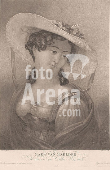 alb15879806 Woman with big hat, Mad.lle Van Maelder (title on object), Portraits of women by famous painters (series title), print maker: Philibert-Louis Debucourt, after painting by: Anthony van Dyck, publisher: Bance et Aumont, Paris, 1821, paper, etching, height 461 mm × width 335 mm, print.