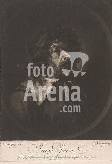 alb15869179 Portrait of Inigo Jones, print maker: Jonathan Spilsbury, after painting by: Anthony van Dyck, London, 1766, paper, height 328 mm × width 228 mm, print.