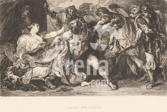 alb15914850 Samson and Delilah, Samson and Delilah (title on object), print maker: William Unger, after painting by: Anthony van Dyck, printer: A. Pisani, Vienna, 1861 - 1889, paper, etching, height 307 mm × width 430 mm, print.