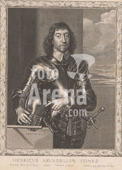 alb15921032 Portrait of Henry Frederick Howard, second Earl of Norfolk and third Earl of Arundel and Surrey in an ornamental frame, Henricus Arundelliae Comes (title on object), Portraits of Earls and Countesses (series title), print maker: Pierre Lombard, after painting by: Anthony van Dyck, publisher: Pierre Lombard, print maker: London, publisher: Paris, France, c. 1660 - c. 1663, paper, engraving, height 353 mm × width 256 mm, print.
