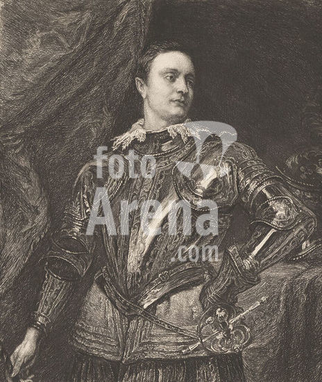 alb15914113 Portrait of Justus van Meerstraeten, print maker: William Unger, after painting by: Anthony van Dyck, Germany, 1847 - 1889, paper, etching, height 272 mm × width 198 mm, print.