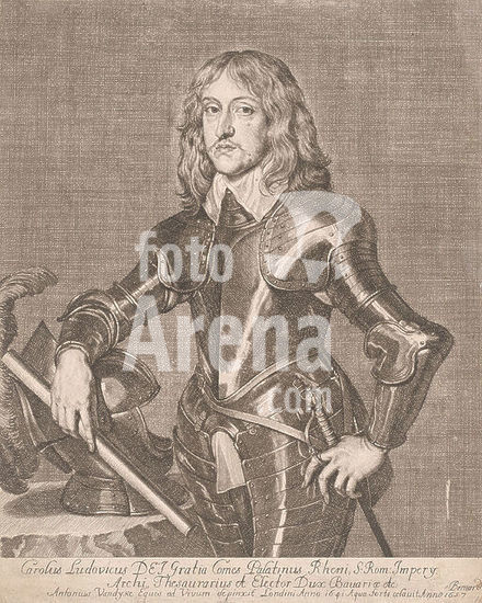 alb15928481 Portrait of Charles I Louis, Count Palatine of the Rhine, Carolus Ludovicus DEJ Gratia Comes Palatinus Rheni (...) (title on object), print maker: Samuel Bernard, after painting by: Anthony van Dyck, print maker: France, after painting by: London, 1657, paper, etching, engraving, height 317 mm × width 259 mm, print.