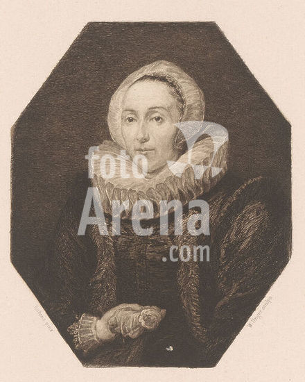 alb15928556 Portrait of an unknown woman with a rose, print maker: William Unger, after painting by: Anthony van Dyck, after painting by: Peter Paul Rubens, (rejected attribution), Germany, 1847 - 1889, paper, etching, height 253 mm × width 172 mm, print.