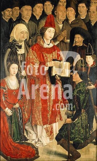 alb2031200 Henry the Navigator with hat, with Saint Vincent and Portuguese Royal Family, ca 1470, panel. Museum: Museo de Arte Antiga, LISBOA, PORTUGAL. Author: NUNO GONCALVES. ENRIQUE DE PORTUGAL (EL NAVEGANTE).
