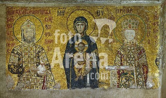 alb2033104 Mosaic of Virgin flanked by Emperor John II Commenus and Empress Irene ruled Byzantine Empire (1118-43). Museum: Haghia Sofia, ISTANBUL, TURQUIA. IRENE DE BIZANCIO.