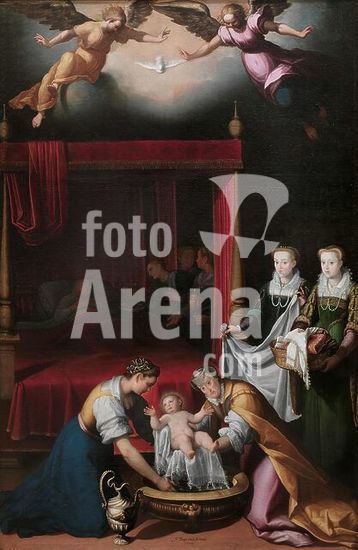 alb2036119 Juan Pantoja de la Cruz / 'The Birth of the Virgin', 1603, Spanish School, Oil on canvas, 260 cm x 172 cm, P01038. Museum: MUSEO DEL PRADO, MADRID, SPAIN. VIRGIN MARY. Saint Anne.