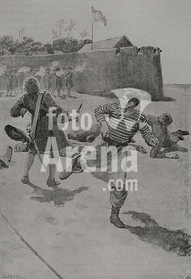alb3608006 Lazarillo Stealing Grapes from the Poor Blind Beggar. Artist: Thomas Wijck (Dutch, Beverwijck, near Haarlem 1616?-1677 Haarlem). Dimensions: 13.2 x 11.9 cm. Date: 17th century. Museum: Metropolitan Museum of Art, New York, USA.