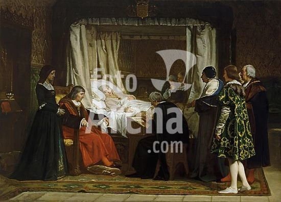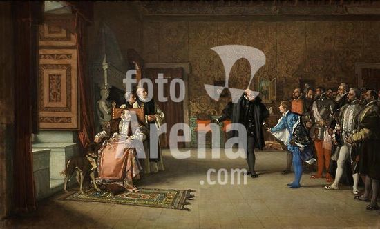 alb2068124 Eduardo Rosales Gallinas / 'Juan de Austria's presentation to Emperor Carlos V in Yuste', 1869, Spanish School, Oil on canvas, 76,5 cm x 123,5 cm, P04610. Museum: MUSEO DEL PRADO, MADRID, SPAIN.