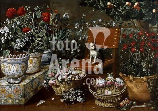 alb2068201 Tomás Hiepes / 'Garden View with a Dog', 1660-1670, Spanish School, Oil on canvas, 109,5 cm x 156,5 cm, P07719. Museum: MUSEO DEL PRADO, MADRID, SPAIN.