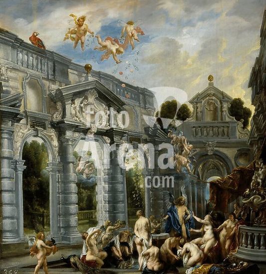 alb2068283 Jacob Jordaens / 'The Love of Cupid and Psyche', ca. 1630, Flemish School, Oil on canvas, 131 cm x 127 cm, P01548. Museum: MUSEO DEL PRADO, MADRID, SPAIN. CUPID. PSYCHE (MYTHOLOGY).