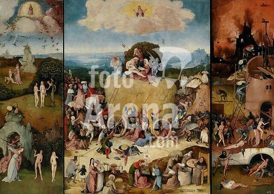 alb2068529 El Bosco / 'Haywain', ca. 1516, Flemish School, Oil on panel, 147 cm x 212 cm, P02052. Museum: MUSEO DEL PRADO, MADRID, SPAIN. ADAM AND EVE. EVE. Adam.