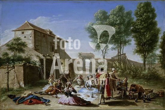 alb2068585 Francisco Bayeu y Subías / 'Lunch on the Field', 1784, Spanish School, Oil on canvas, 37 cm x 56 cm, P00607. Museum: MUSEO DEL PRADO, MADRID, SPAIN.